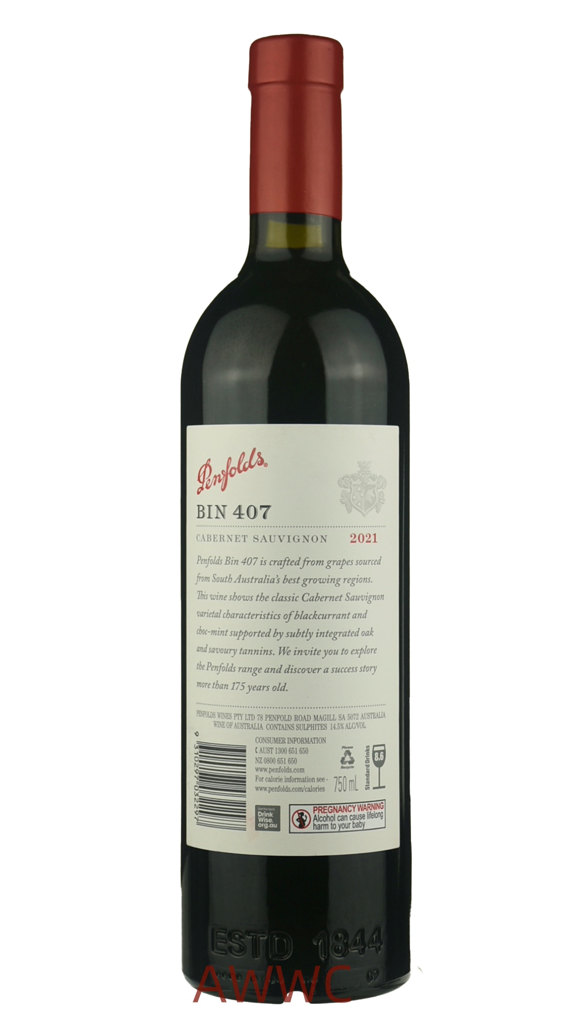 奔富 Bin 407 赤霞珠 2021(木塞)禮盒裝